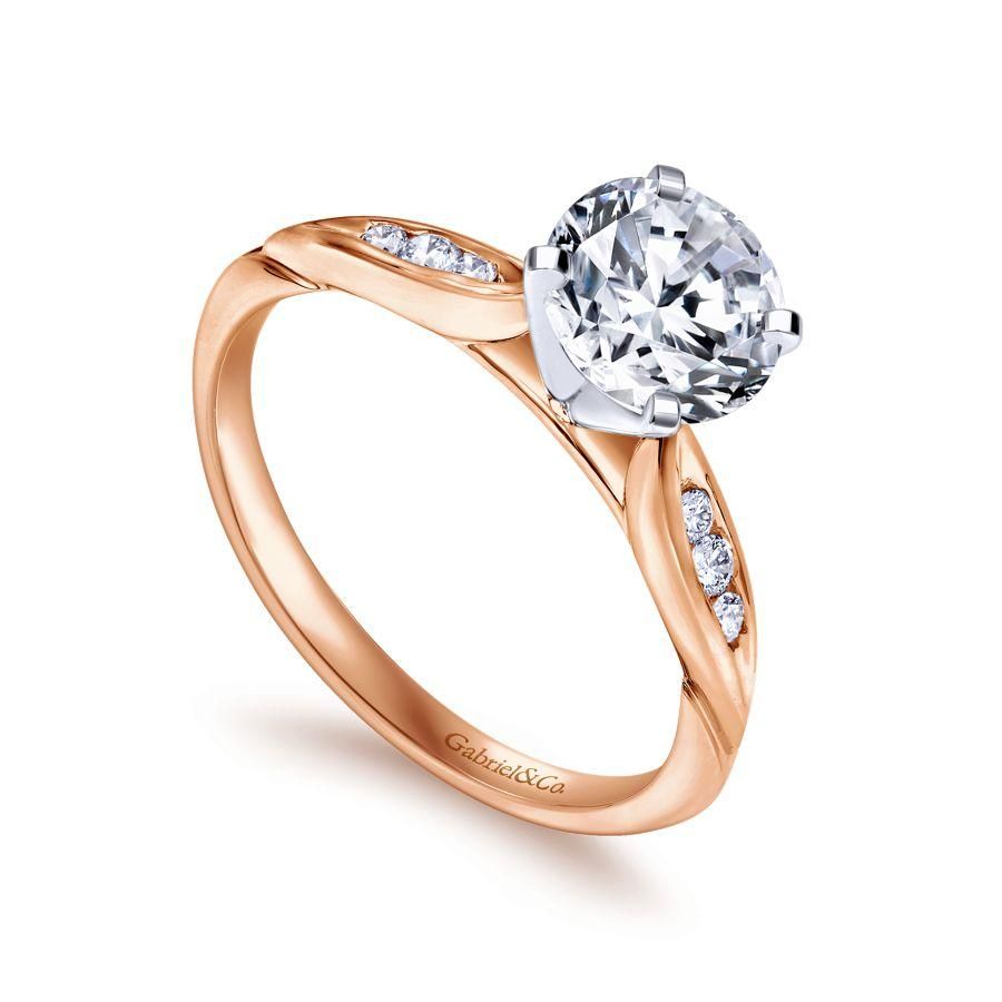 14K Rose Gold Sculpted Channel Set Round Diamond Engagement Ring