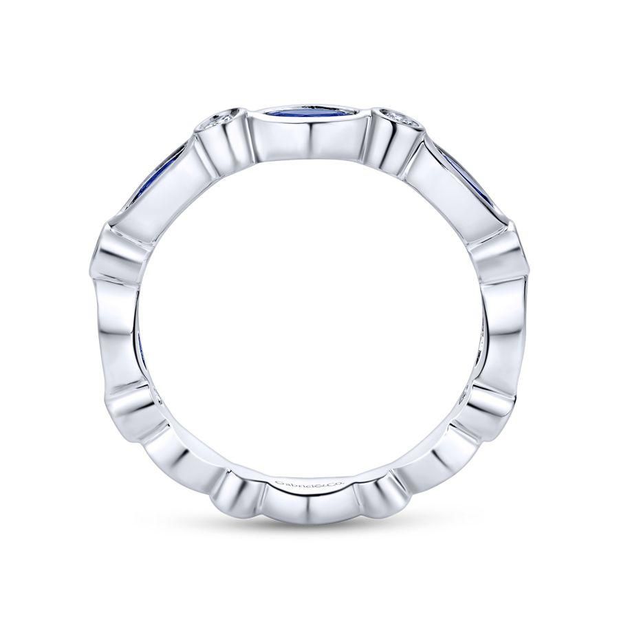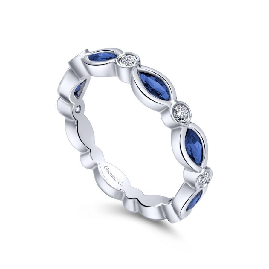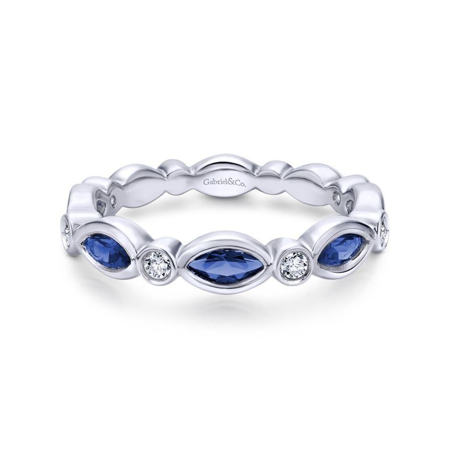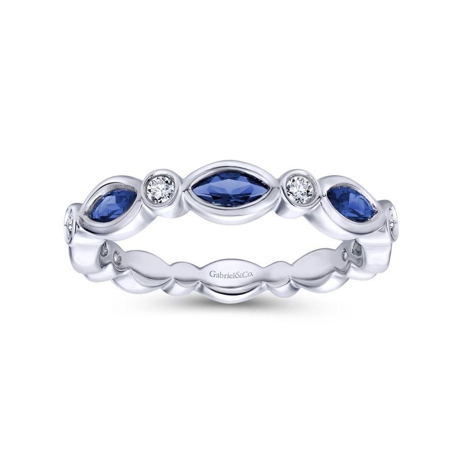 14K White Gold Alternating Round Diamond and Marquise Sapphire Ring
