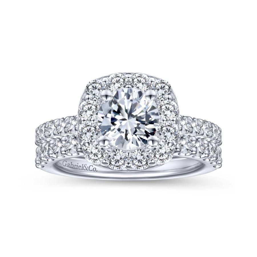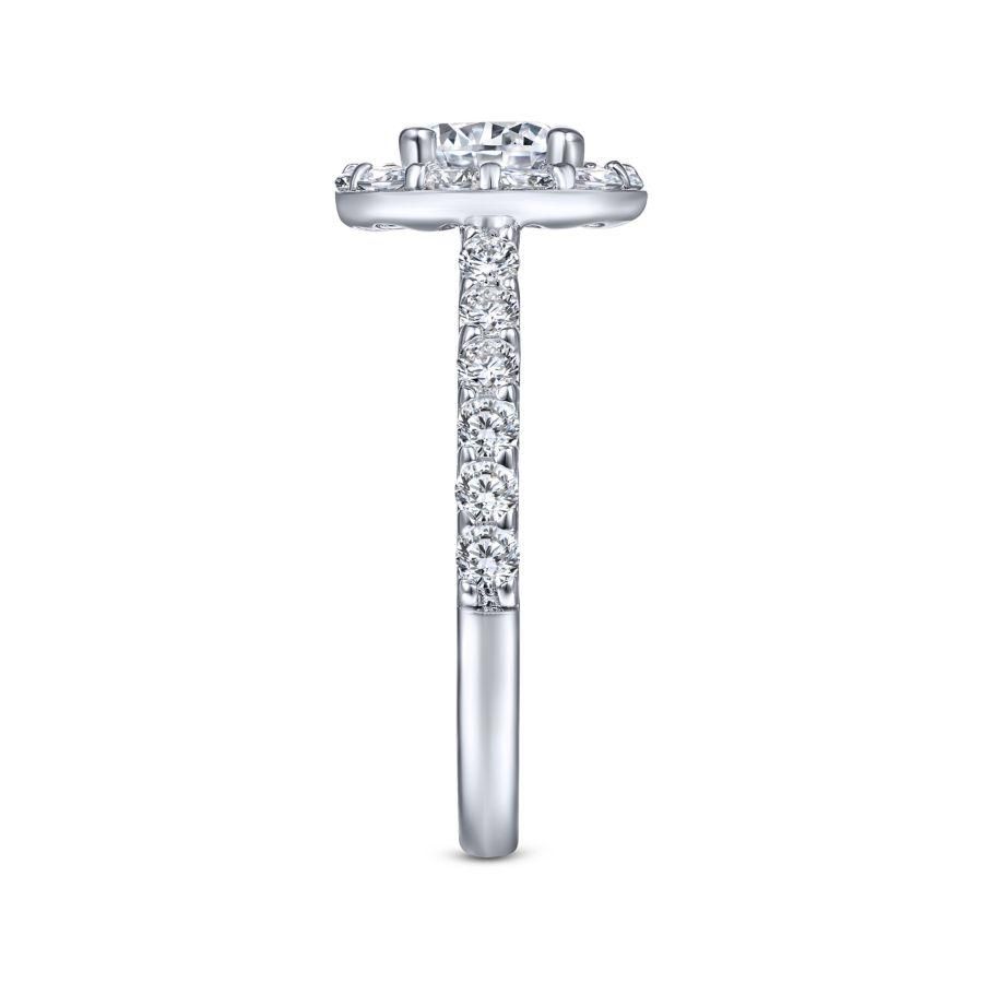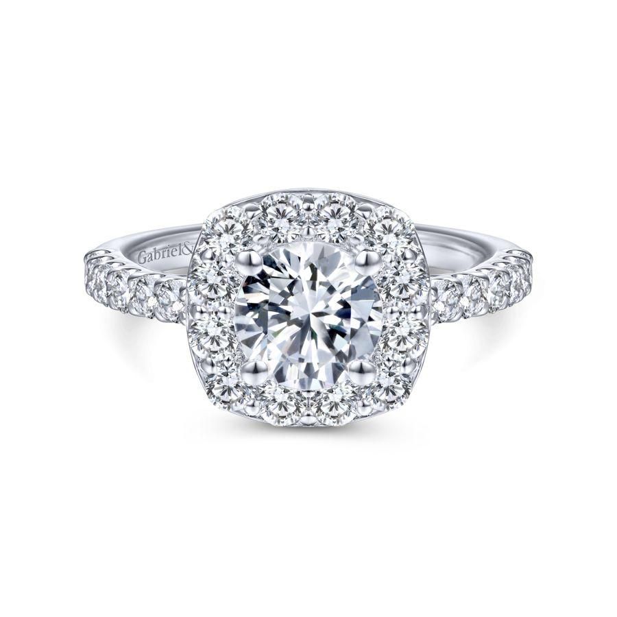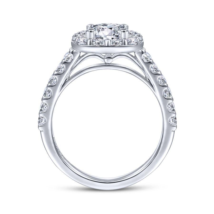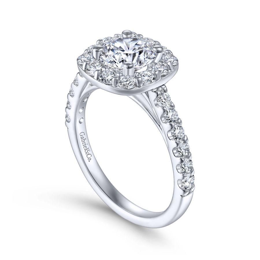 14K White Gold Cushion Halo Round Diamond Engagement Ring
