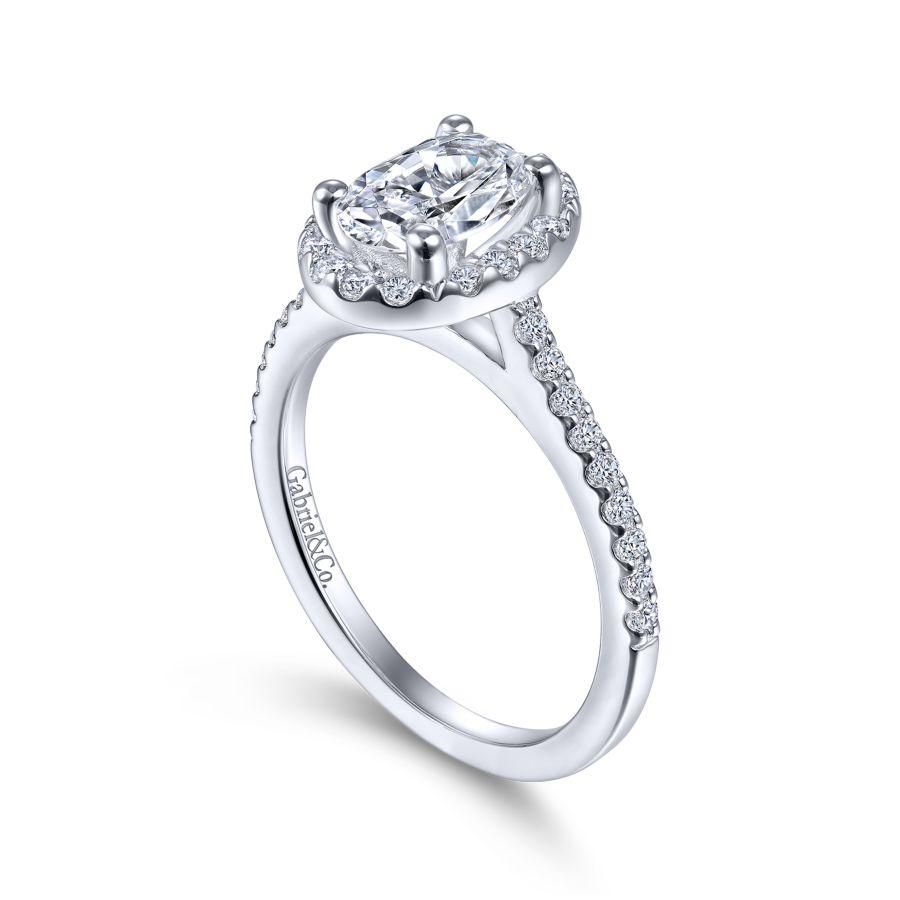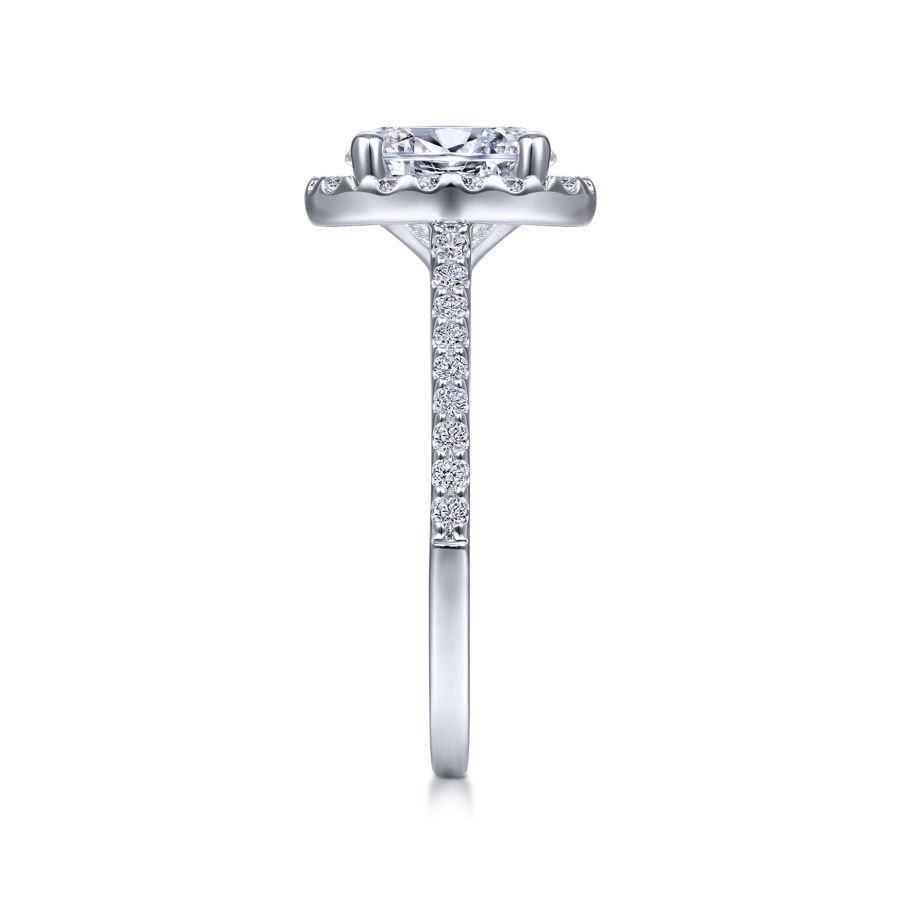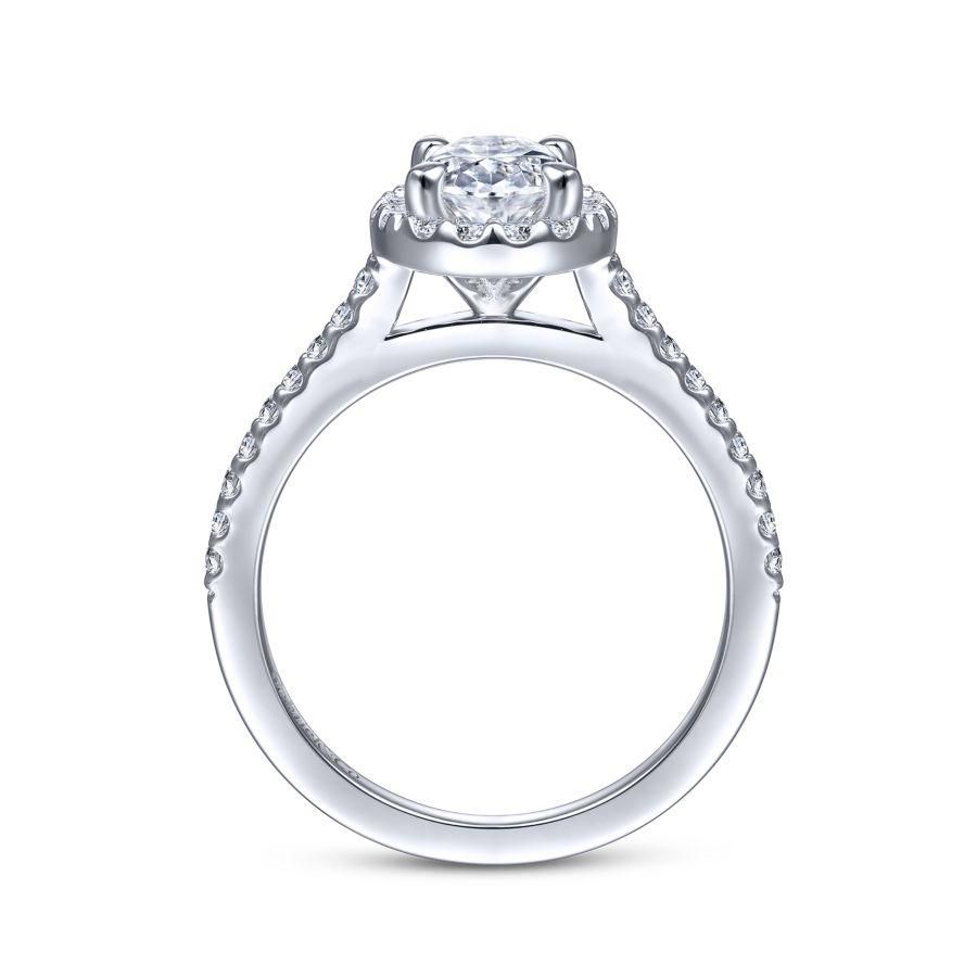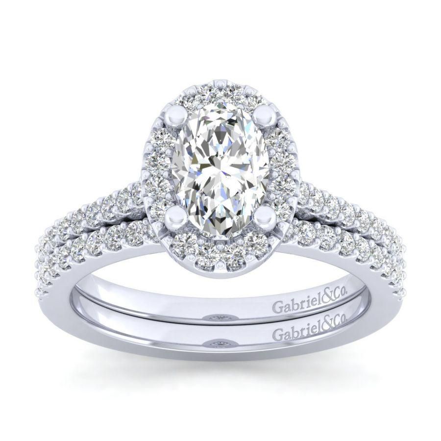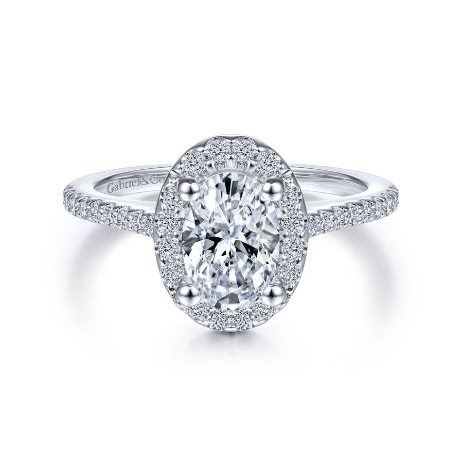 14K White Gold Oval Halo Round Diamond Engagement Ring