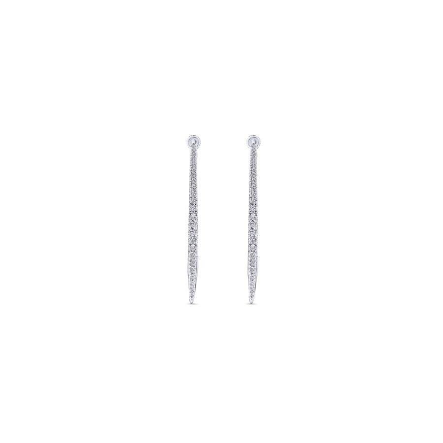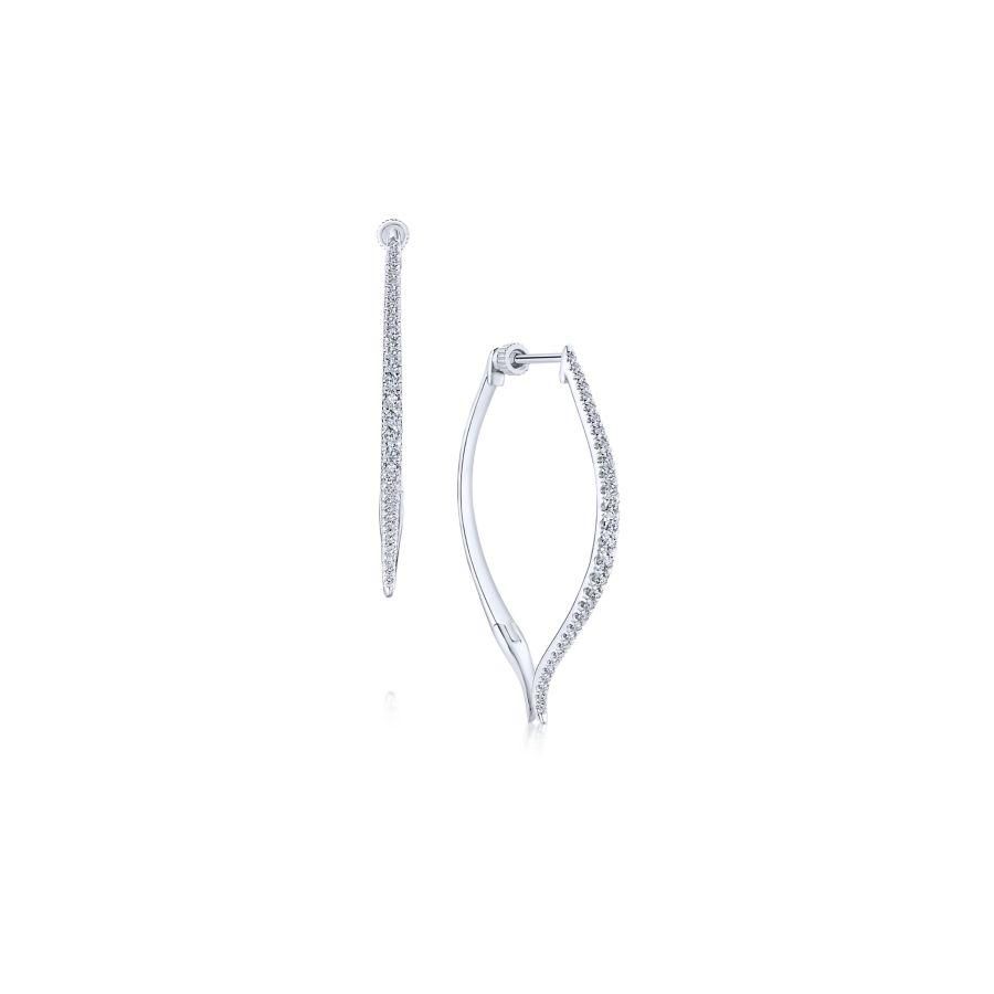 Glamorous polished 14k white gold hoop earrings are expertly set with 0.48cts of scintillating pavé diamonds. Add something new to your everyday jewelry collection with these contoured diamond hoop earrings.