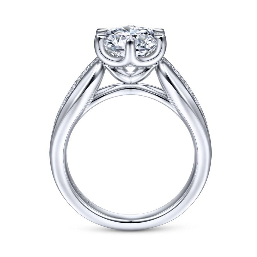 14K White Gold Round Diamond Contemporary Engagement Ring