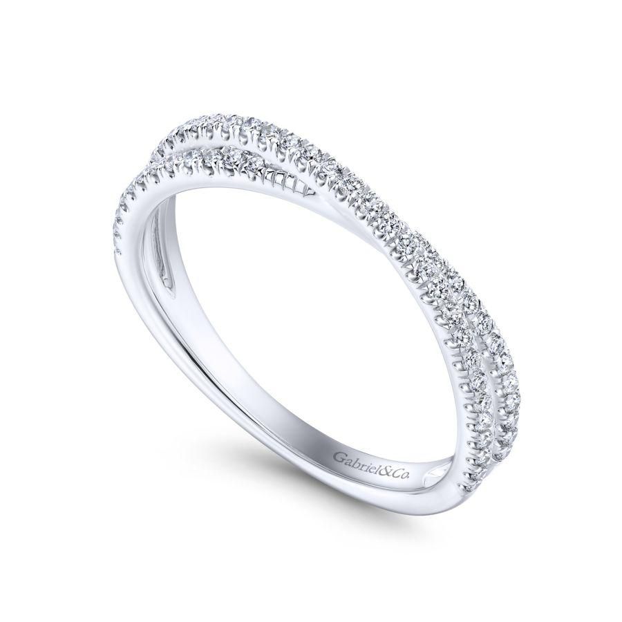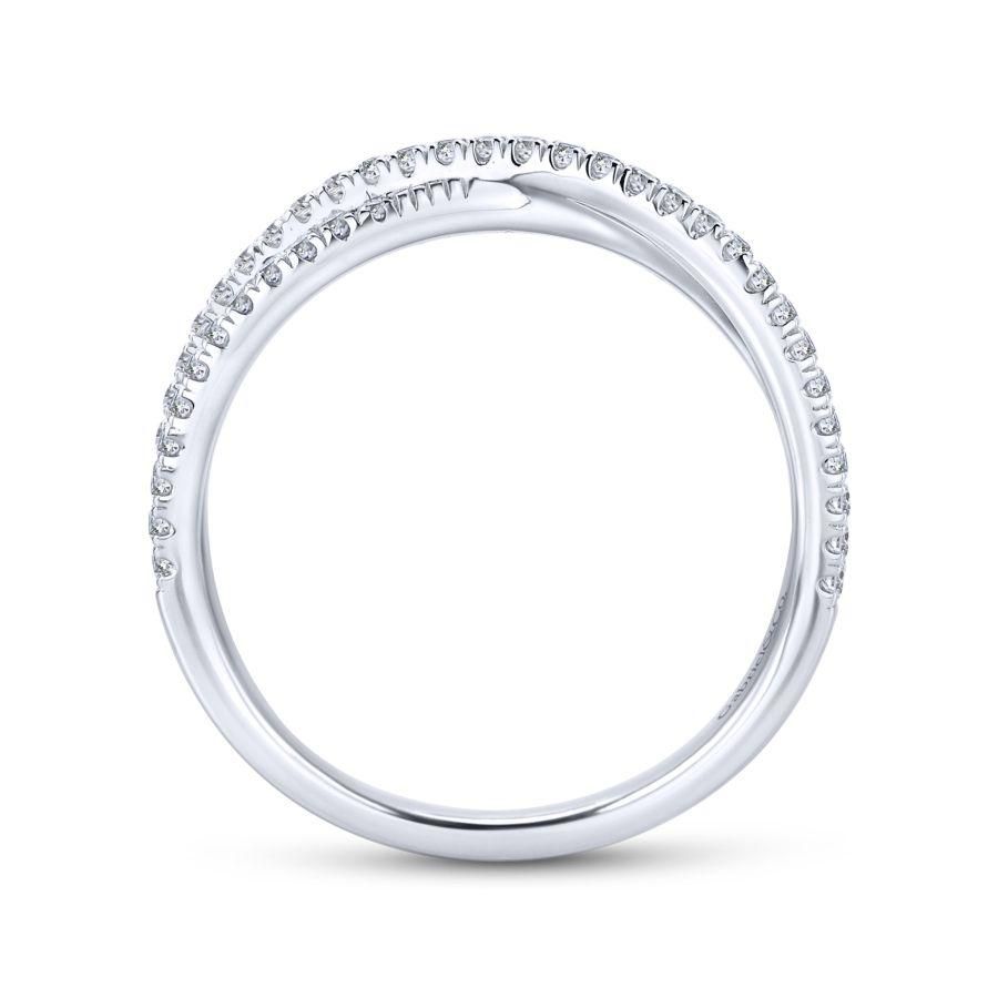 A dueling pair of 14K white gold bands house 0.26ct diamonds in a glittering presentation that's sure to turn heads and impress any onlooker. This stackable ring is special enough to wear on its own yet versatile enough to grace any ring stack.