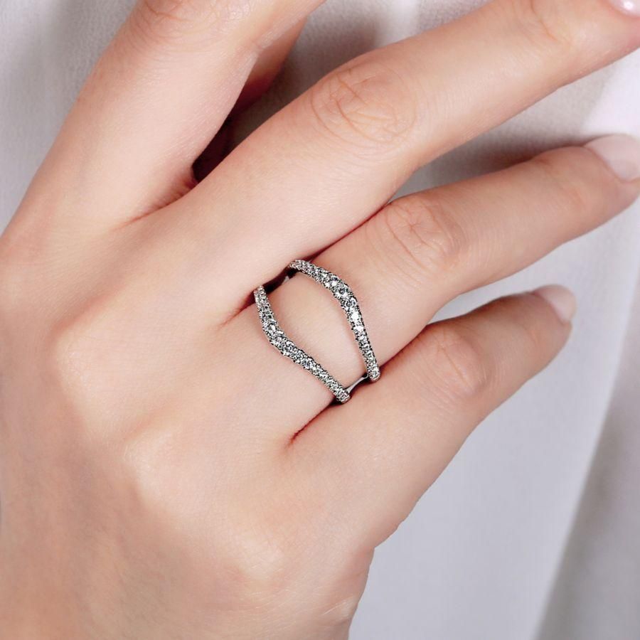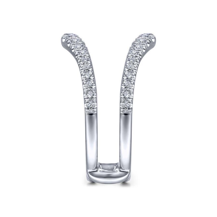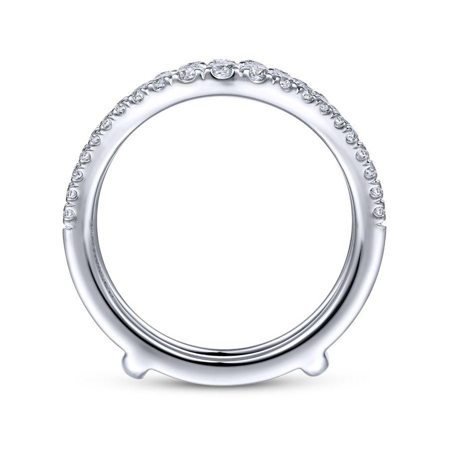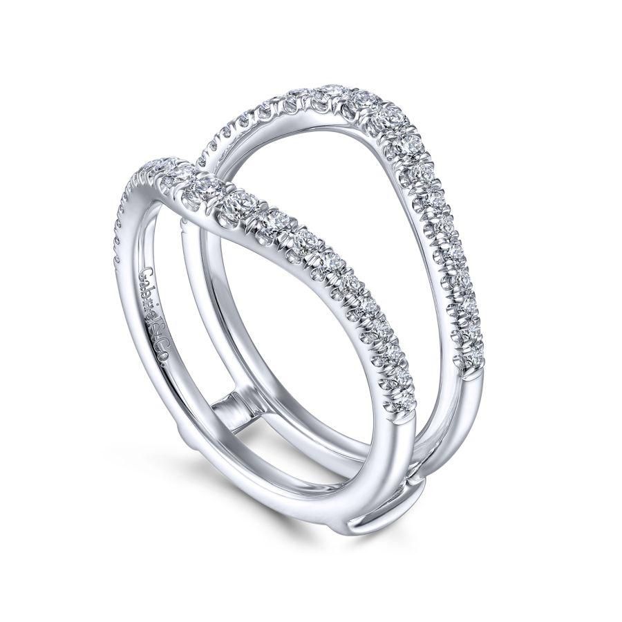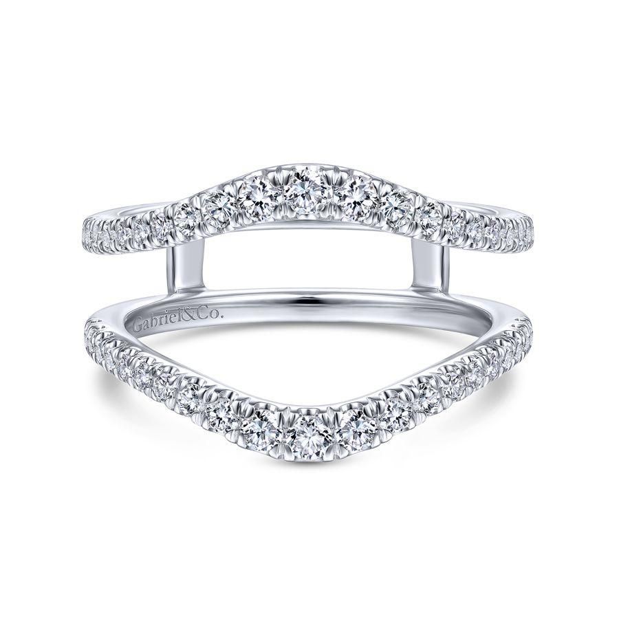 Designed to wrap around your own engagement ring, this gracefully contoured ring jacket is an ideal way to celebrate a wedding anniversary. This style features two strands of 14k white gold encrusted in brilliant .49ct pavé diamonds to expertly enhance your ring's sparkle.