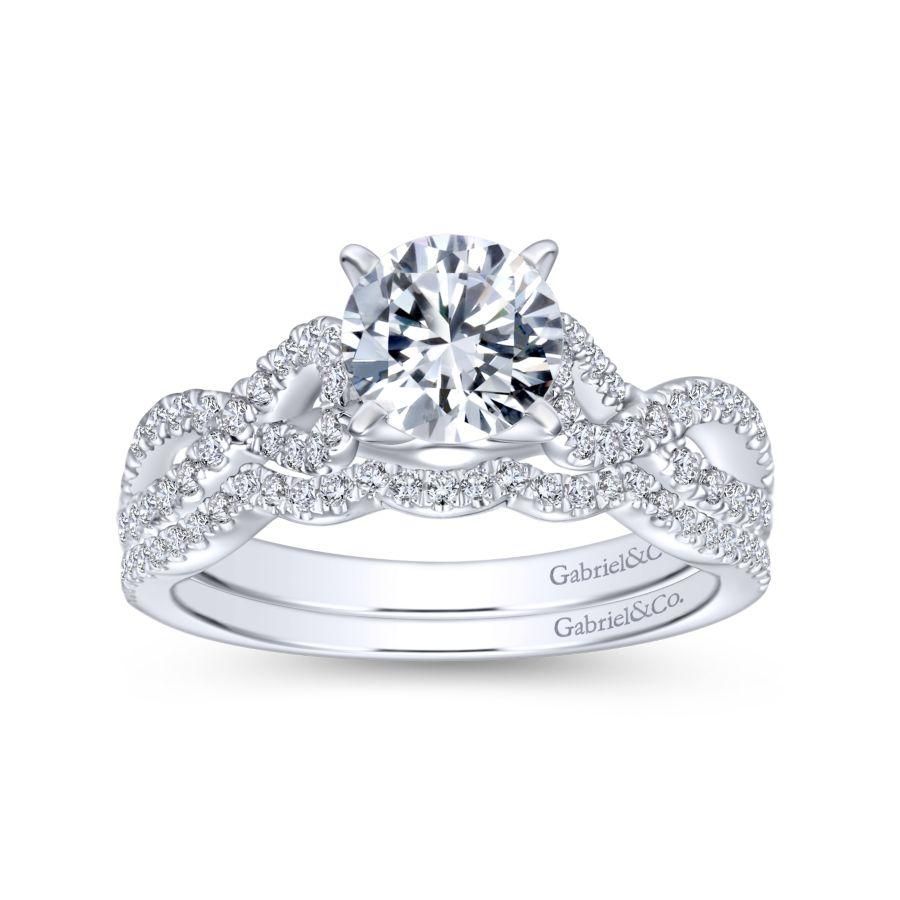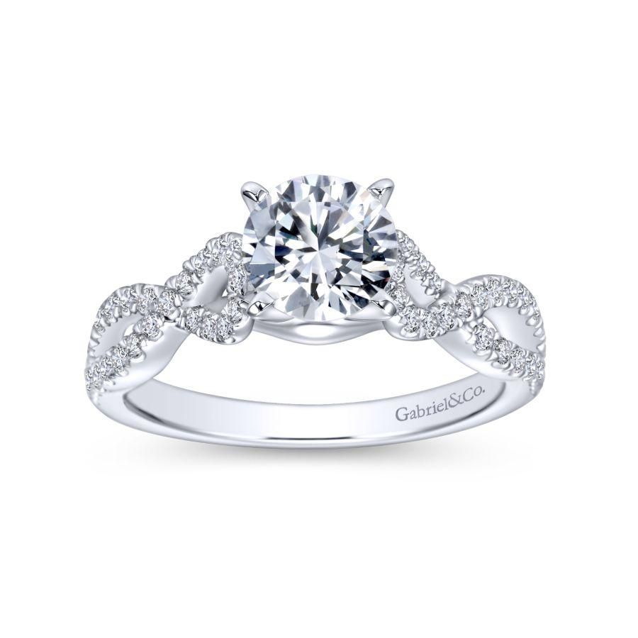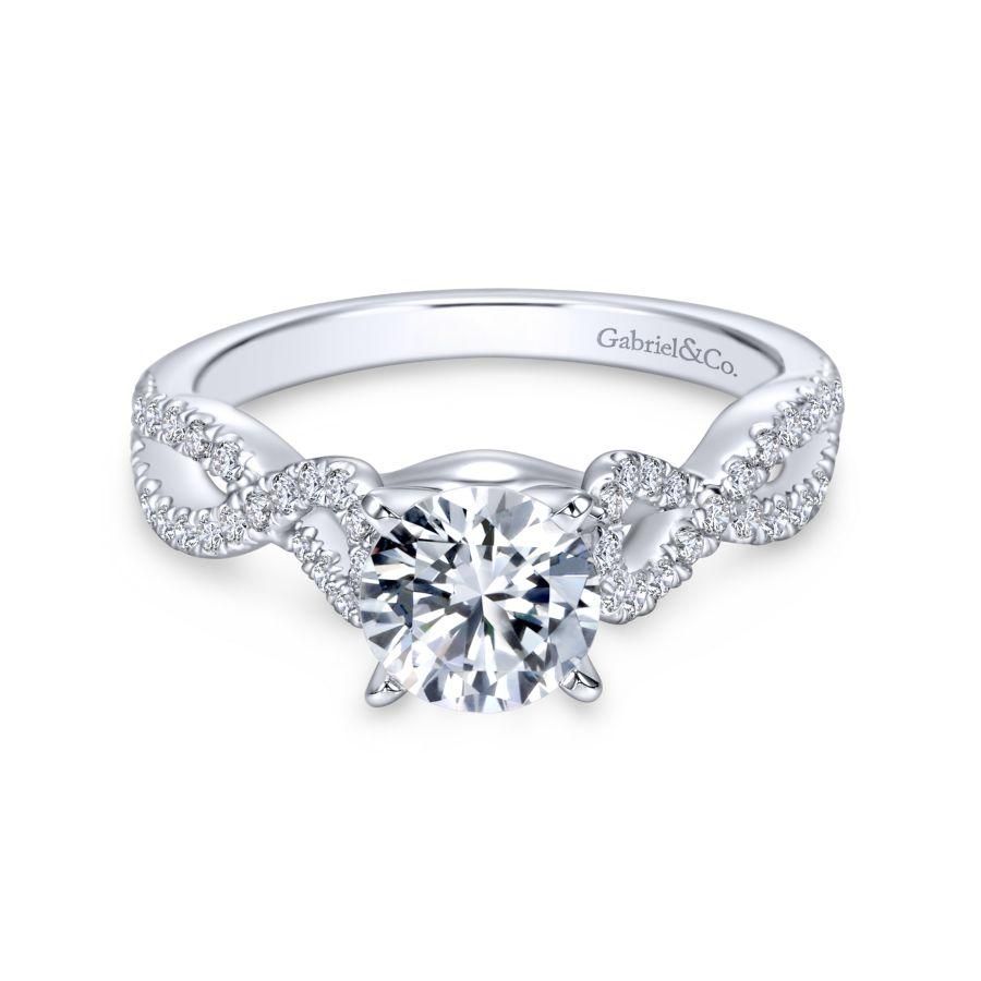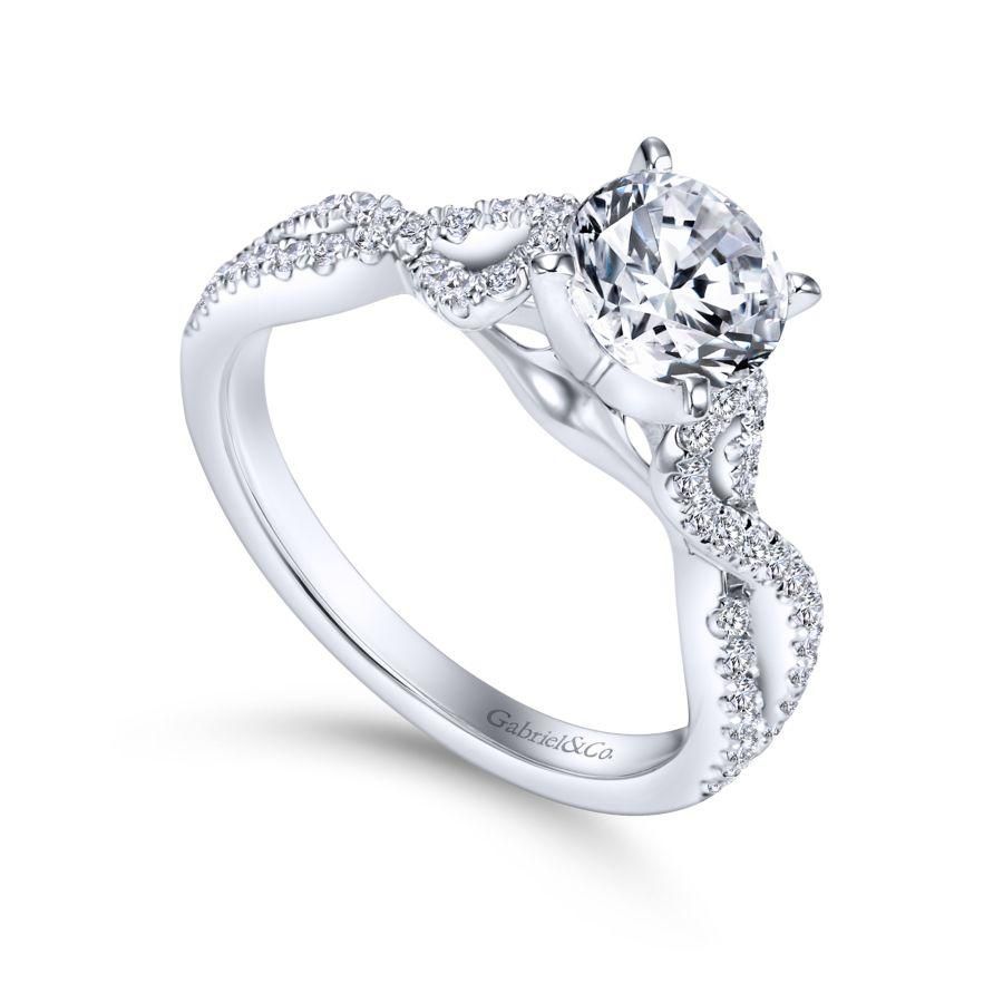 14K White Gold Round Twisted Diamond Engagement Ring