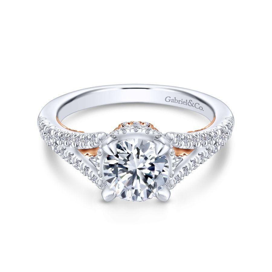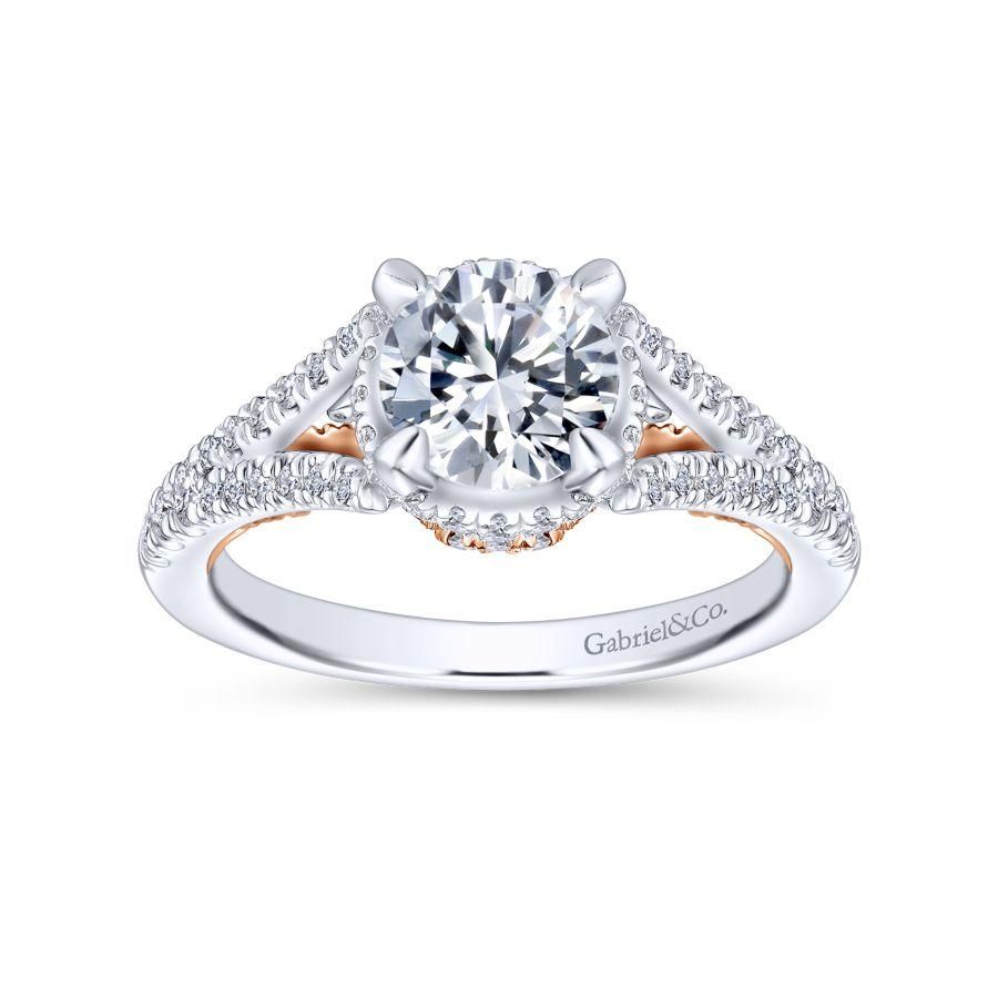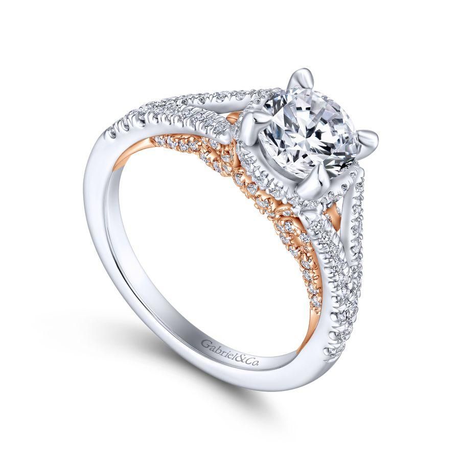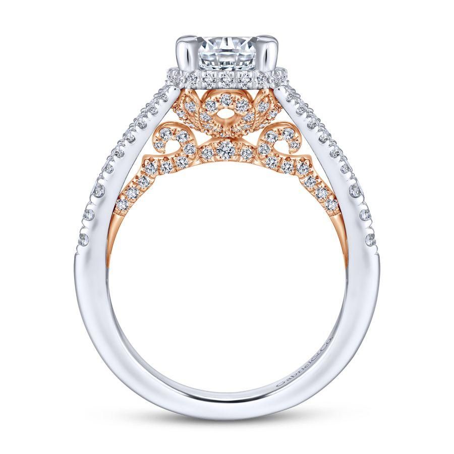 14K White/Rose Gold Gold Round Diamond Split Shank Filigree Engagement Ring