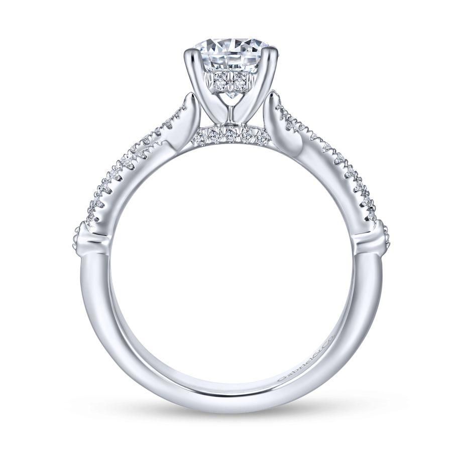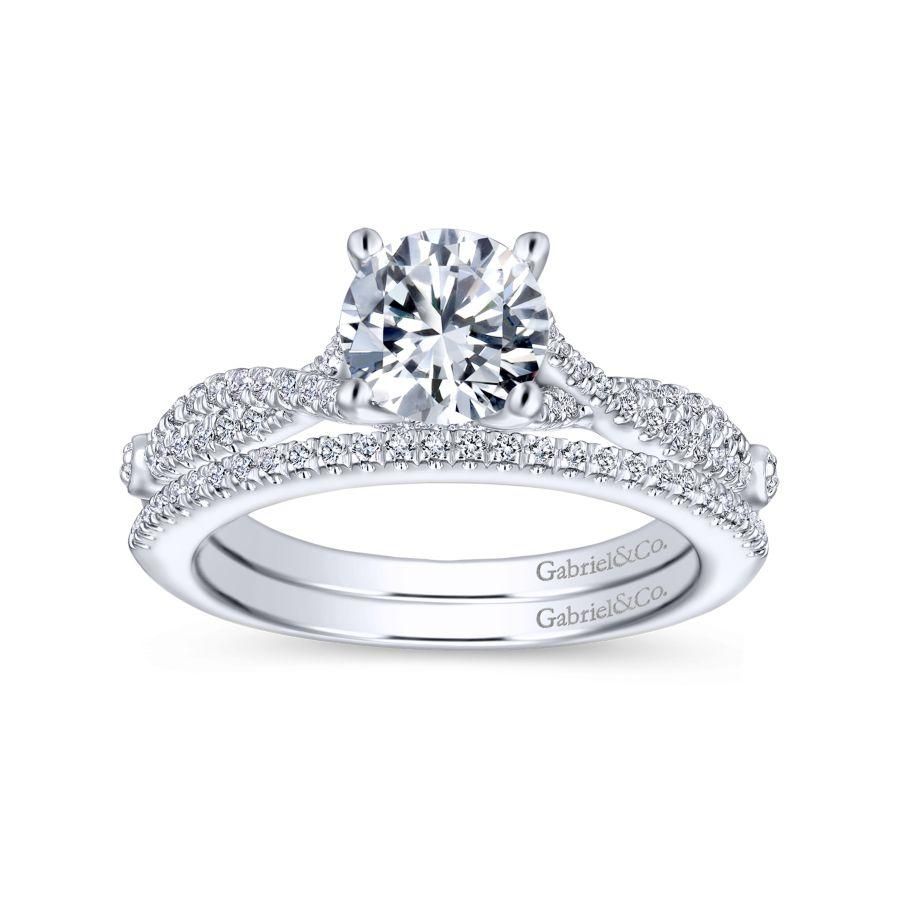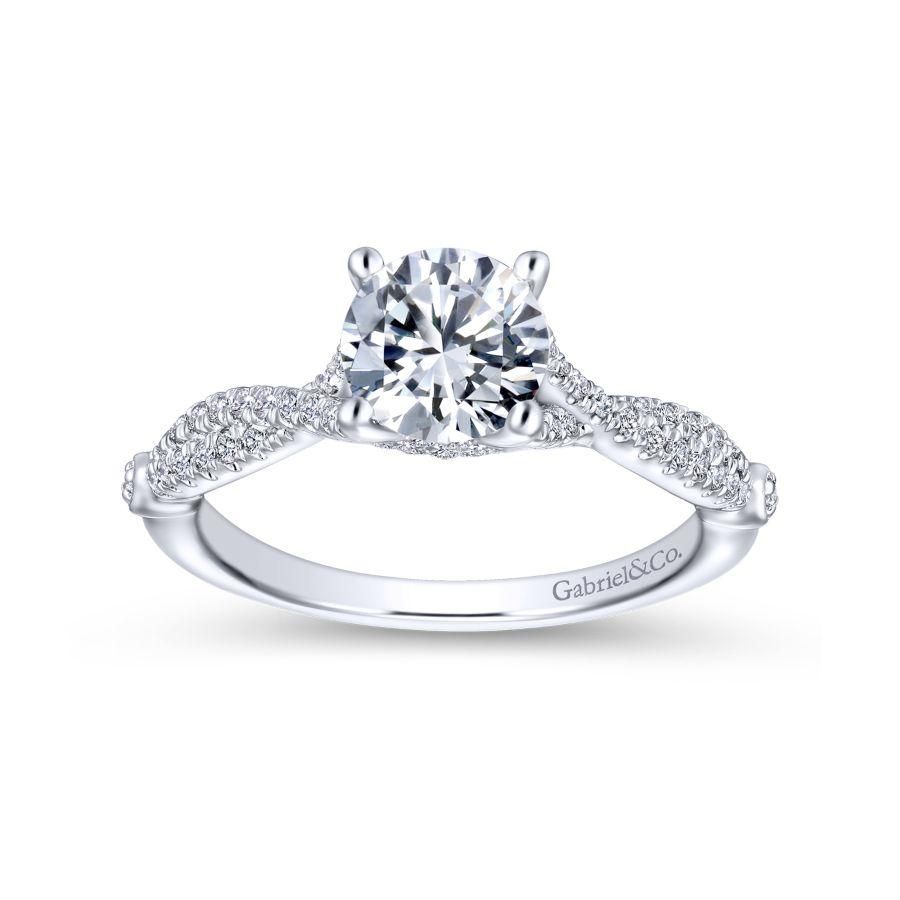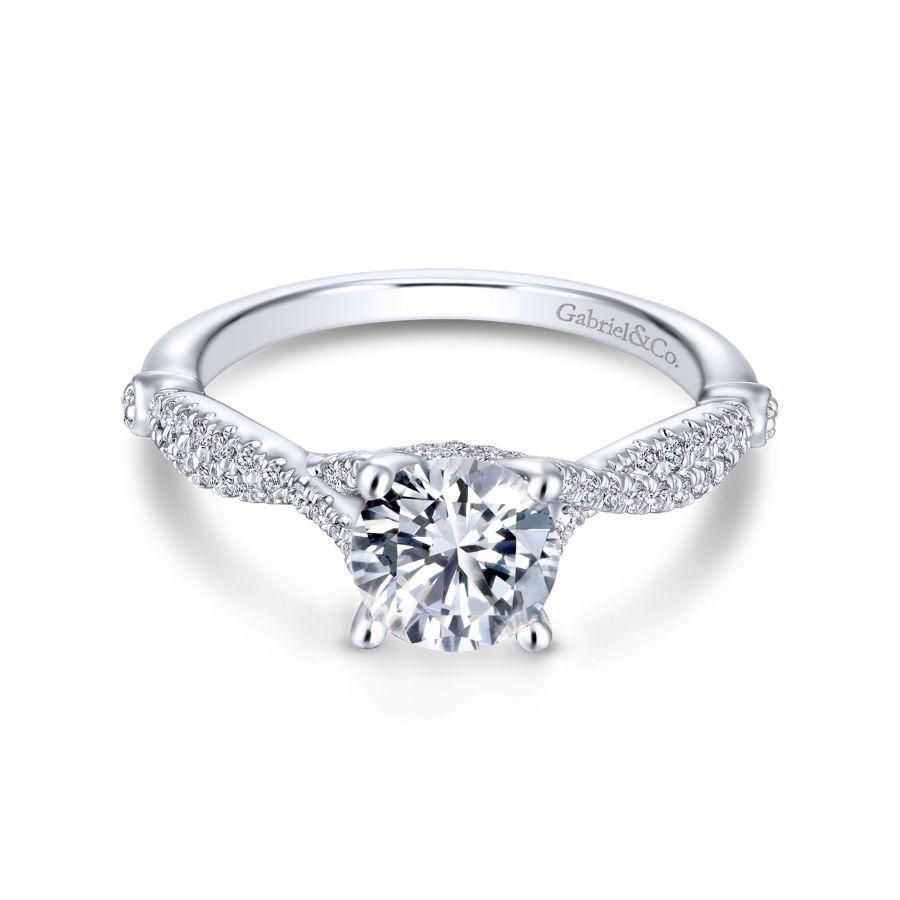 14K White Gold Twisted Round Diamond Engagement Ring