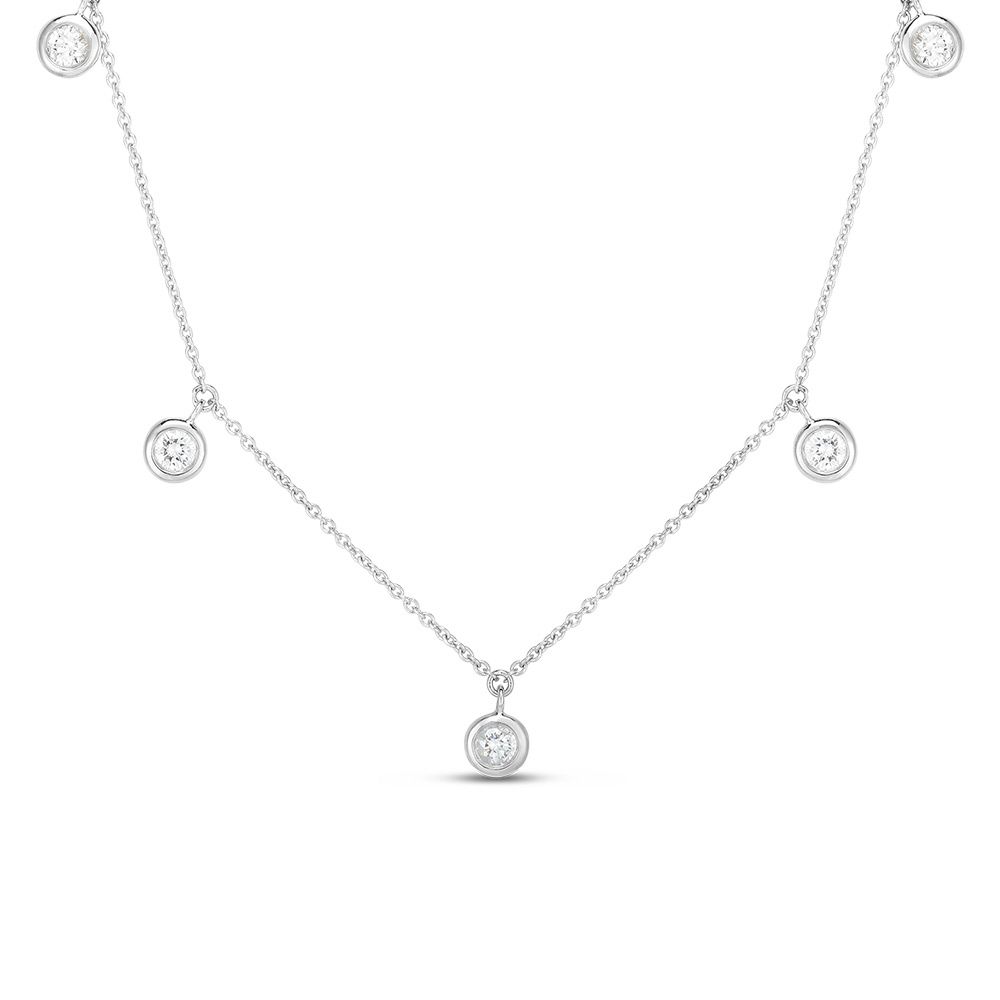 18K White Gold 18" Long 5-Stone Round Diamond Bezel Necklace