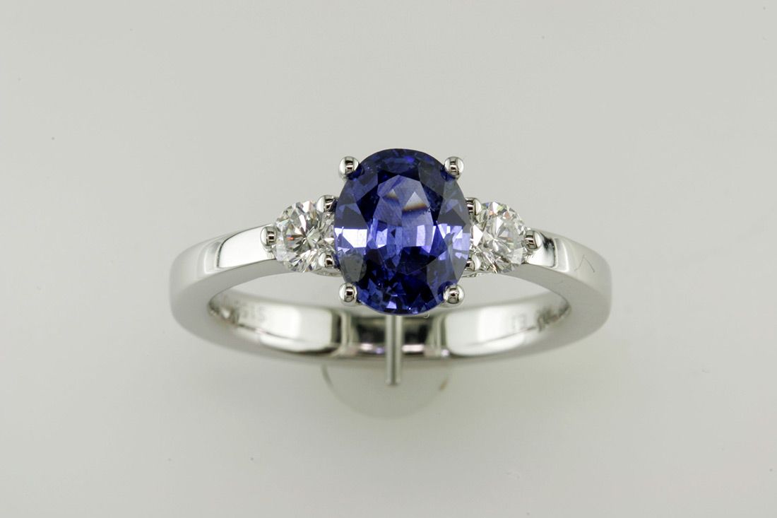 18K White Gold Oval Sapphire and Diamond 3-Stone Ring