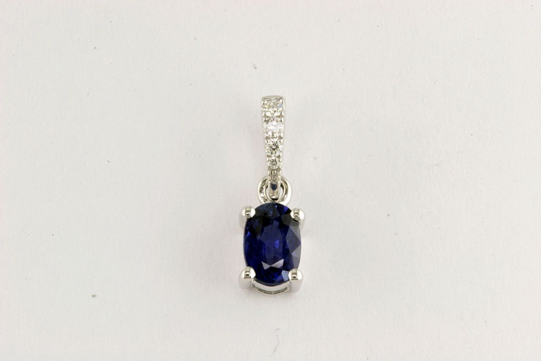 18K White Gold Oval Sapphire and Round Diamond Fashion Pendant