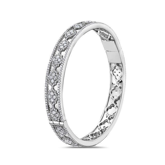 18K White Gold Hinged Cuff Round Diamond Bracelet