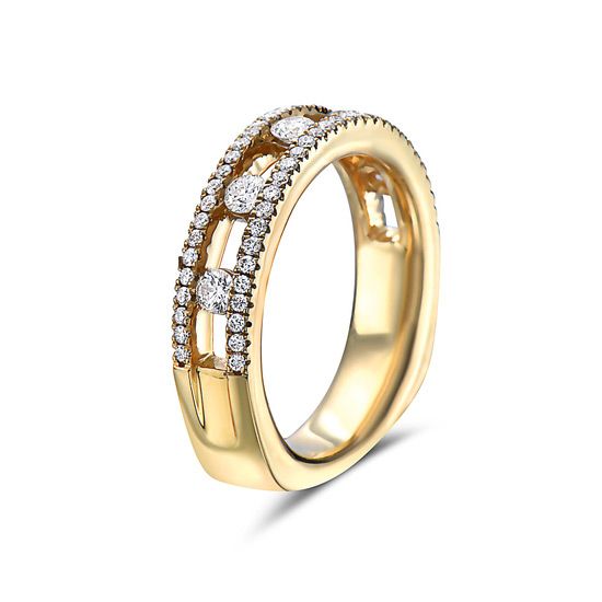 18K Yellow Gold Round Diamond Single Row Fashion Ring
