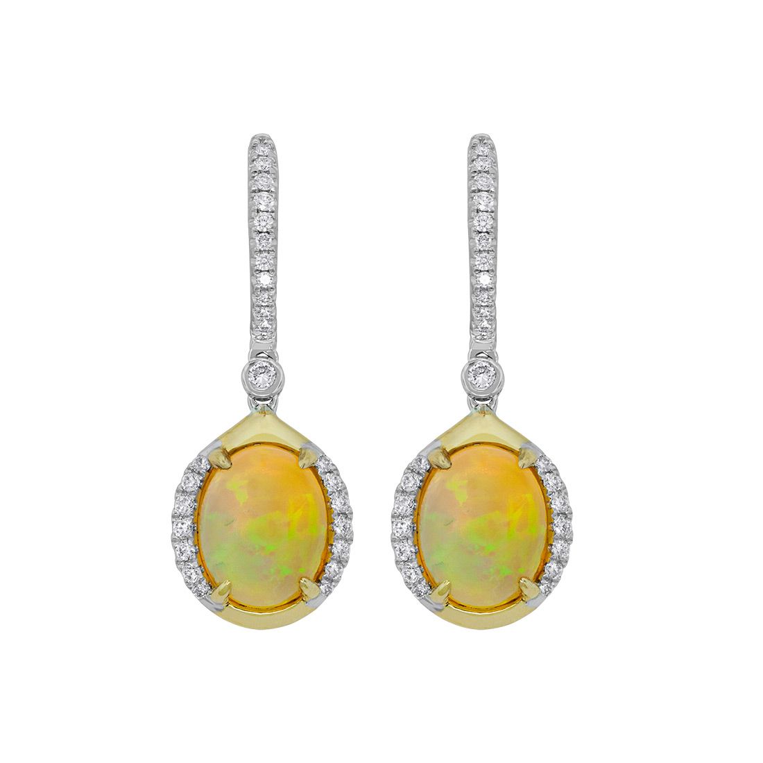 18K Yellow/White Gold Ethiopian Opal and Round Diamond Drop Earrings