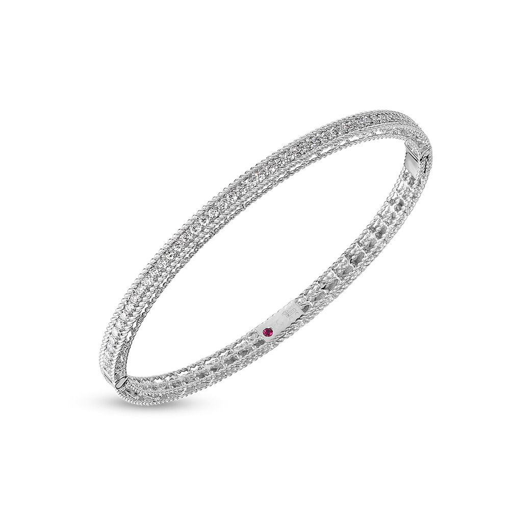 18K White Gold 3.9mm wide "Symphony" Round Diamond Princess Bangle Bracelet