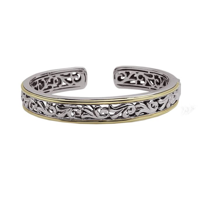 Narrow Sterling Silver and 18 Karat Yellow Gold Ivy Cuff Bracelet.
