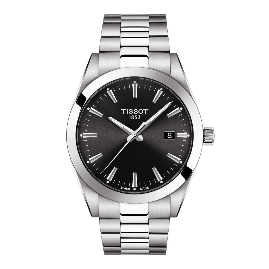 Stainless Steel "Gentleman" Tissot Watch with a Black Stick Dial