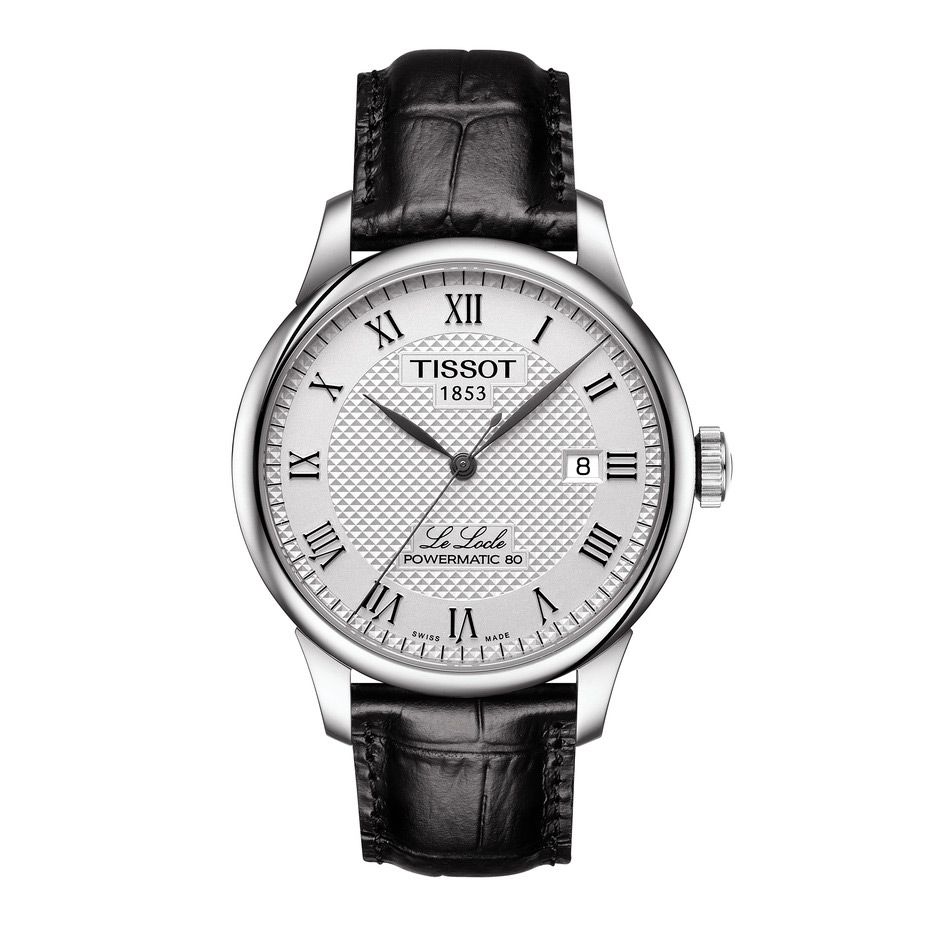 Stainless Steel LeLocle Powermatic 80 Tissot Watch, with a Silver Patterned Roman Dial