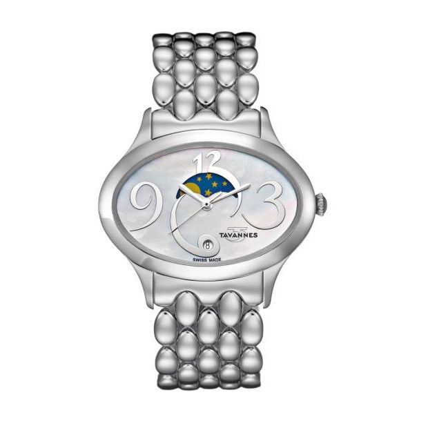 Stainless Steel Tavannes "Eclipse Moon Phase" Watch with a Mother of Pearl Dial, Sapphire Crystal and water resistant up to 10 ATM