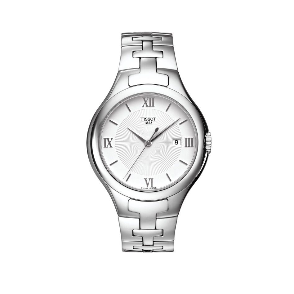 Stainless Steel Tissot Watch White Roman/Stick Dial, Sapphire Crystal, and water resistant up to 100
