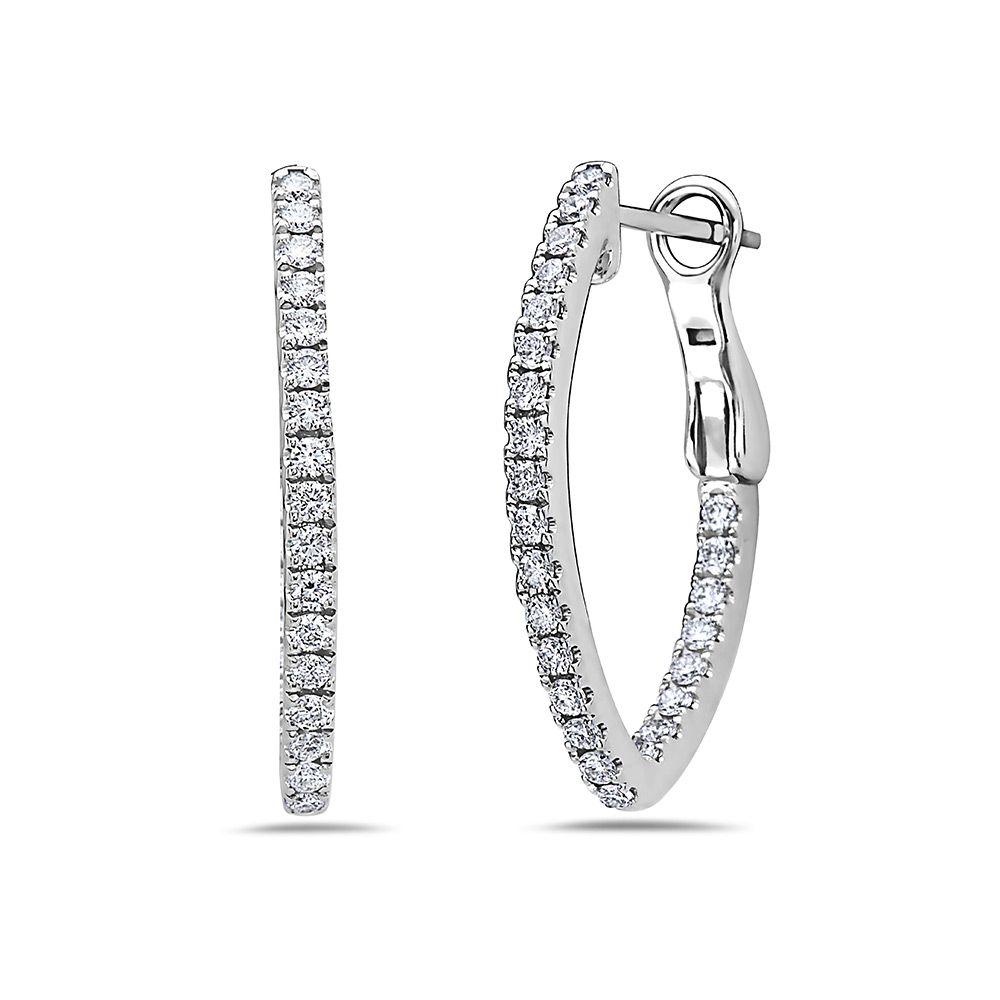 18K White Gold Round Diamond Charles Krypell "Precious Pastel" V Inside-Outside Hoop Earrings